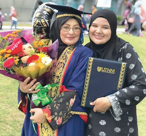 NUR ATHIRA (kanan) bersama ibu tercinta, Hamimah yang meraikan kejayaannya semasa graduasi UTHM di Batu Pahat, Joho