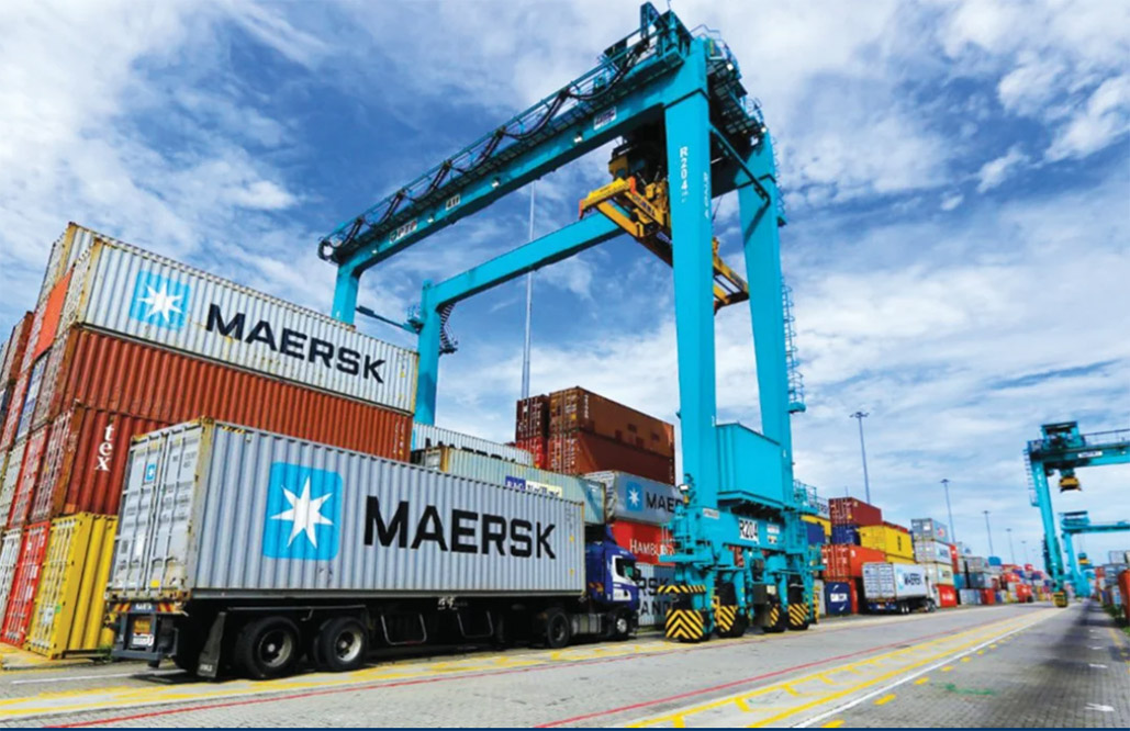 JENTERA e RTG yang mengangkat kontena di pelabuhan.