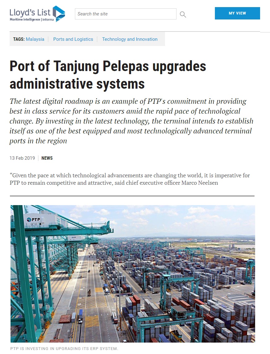The latest digital roadmap is an example of PTP's commitment in providing best in class service for its customers amid the rapid pace of technological change. By investing in the latest technology, the terminal intends to establish itself as one of the best equipped and most technologically advanced terminal ports in the region